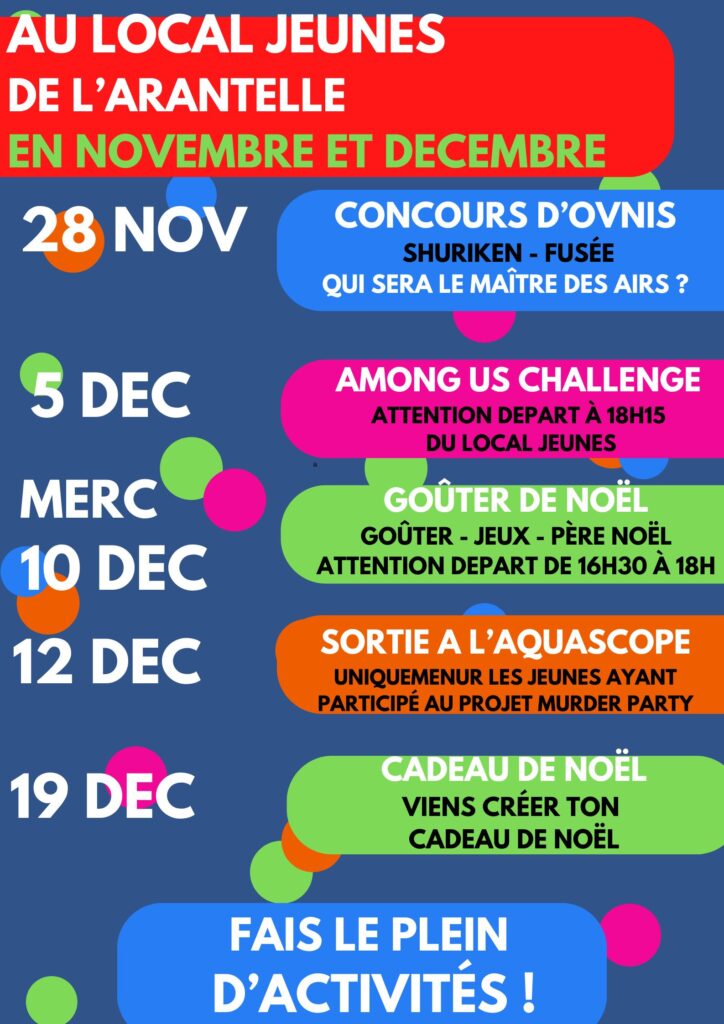 Il te sera proposé des activités sportives, culturelles, manuelles, ainsi que : des journées à thème ; des grands jeux ; des sorties à la journée ou en soirée ; des fêtes ; des séjours.