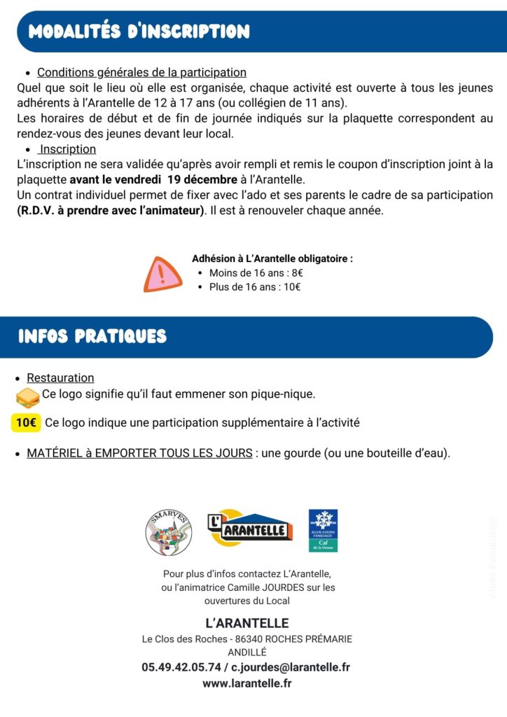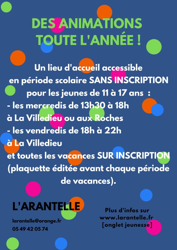 Accueil pendant les vacances scolaires sur les 3 communes (Roches-Prémarie-Andillé, La-Villedieu-du-Clain, Smarves).